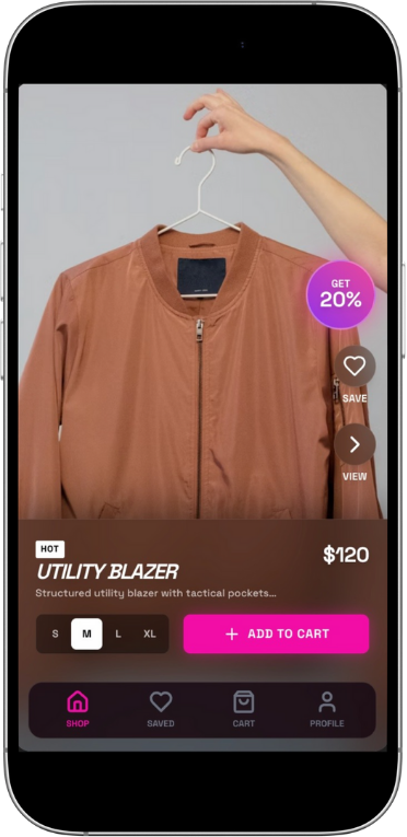 Immersive Product Feed — ดีไซน์แบบ Full Screen Vertical Scroll เหมือนไถ TikTok แต่สำหรับแฟชั่น